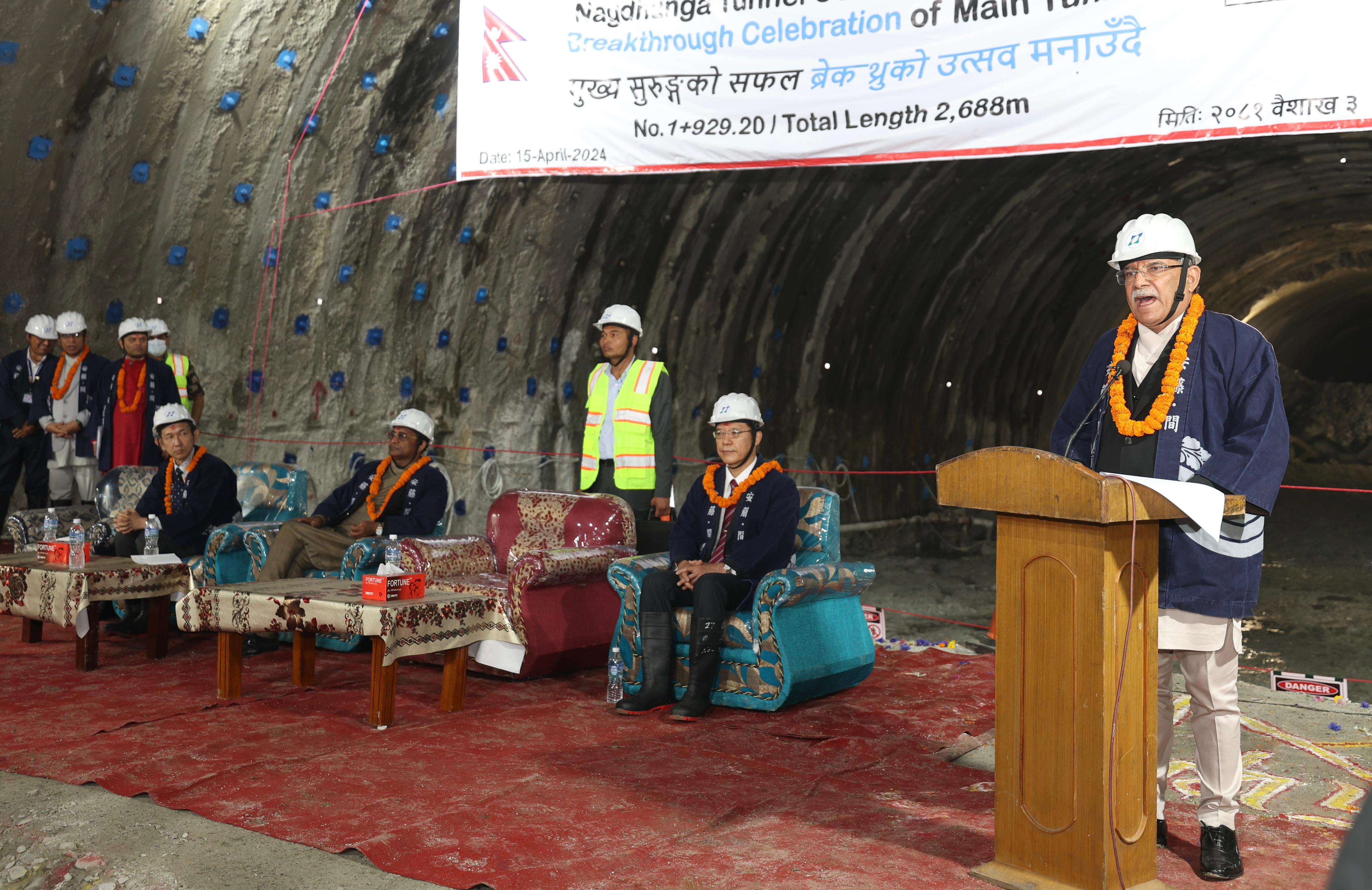 नागढुङ्गा सुरूङमार्ग निर्माण आयोजनाको मुख्य सुरूङ ‘ब्रेक–थ्रु’ भएको अवसरमा आज आयोजित कार्यक्रमलाई सम्बोधन गर्दै प्रधानमन्त्री प्रचण्डले नेपालको भौगोलिक बनौटका आधारमा सुरूङमार्ग निर्माणलाई प्राथमिकता दिनुपर्ने बताउनुभयो।